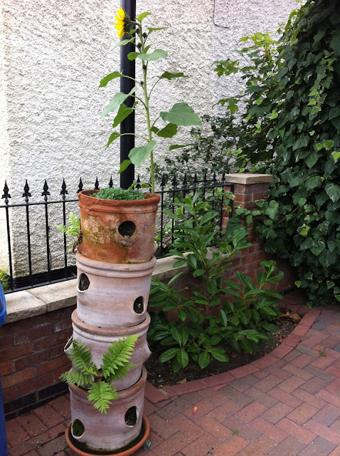 No Strawberries as you can see!!!! The ferns and the Sunflower just appeared!
